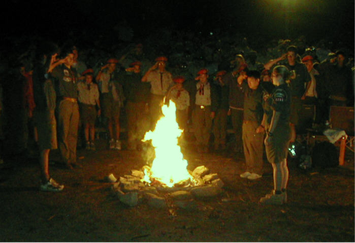![]() Flag Retirement Ceremony (Two flags were retired simultaneously in the two fire rings) A flag is never said to be
